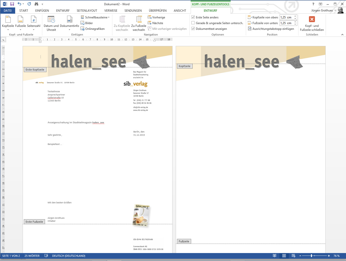 Dokumentvorlagen oder Templates für Office-Programme (wie z.B. MS Word) ersetzen immer mehr die klassischen Briefbogen-Vordrucke. Bei dieser Variante werden die Briefe komplett inklusive Logotype/Signet und allen Angaben für den kaufmännischen Schriftverkehr ausgedruckt oder als PDF generiert. Umso wichtiger ist es, hier konsistente Dokumentvorlagen einzusetzen, die das Corporate Design des Unternehmens in unveränderter Form wiedergeben. Variationen für erste Seite und Folgeseiten sind problemlos umsetzbar, ebenso Tabellenlayouts, Serienbrieffunktionen oder automatisch erzeugte Inhalte. Wir erstellen Ihnen gerne Ihre individuellen Vorlagen.